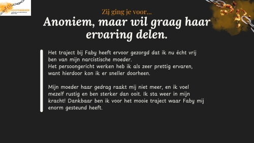 Na dit traject ben jij in staat om te gaan met je narcistische ouder, zonder dat je hierdoor steeds van slag bent.
